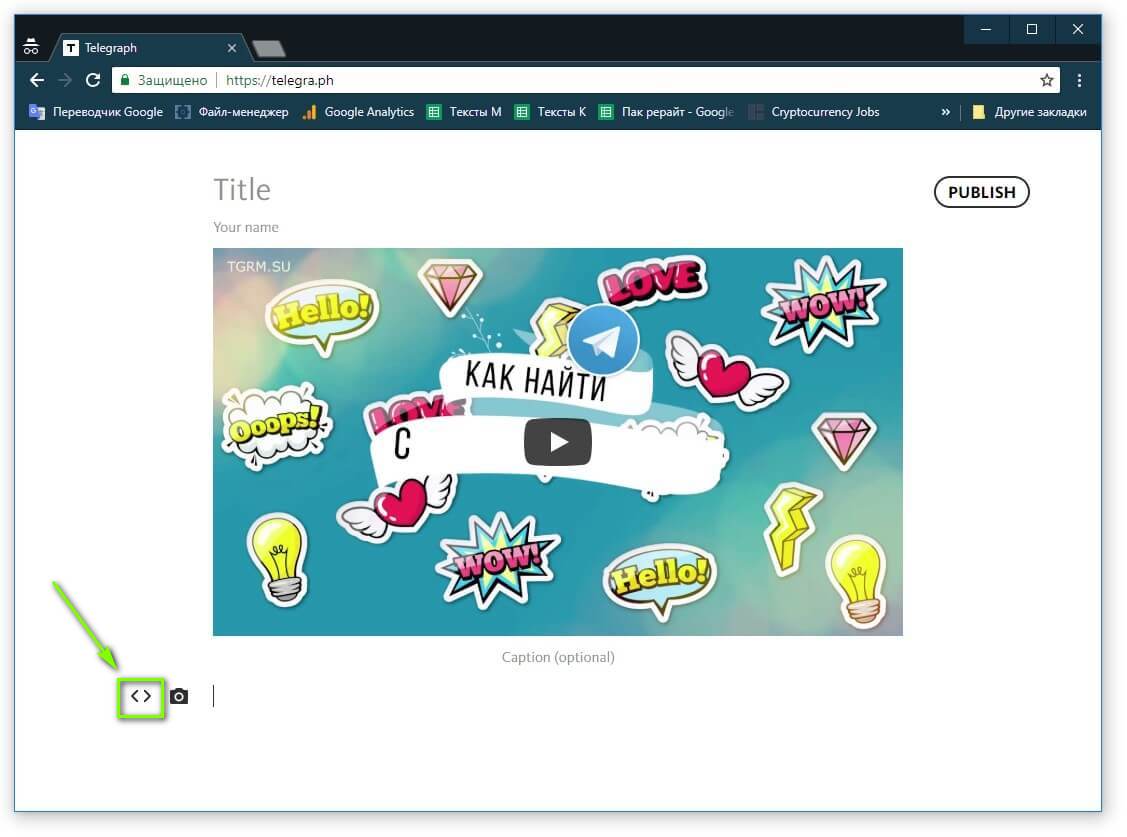 Вставить видео или твитт в Telegram редактор очень просто — кликните на этот значок и вставьте ссылку