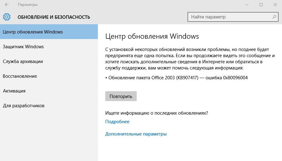 После выполнения всех действий, которые также можно просмотреть на видео, любая попытка запросить обновления на сервере Microsoft окончится ошибкой.
