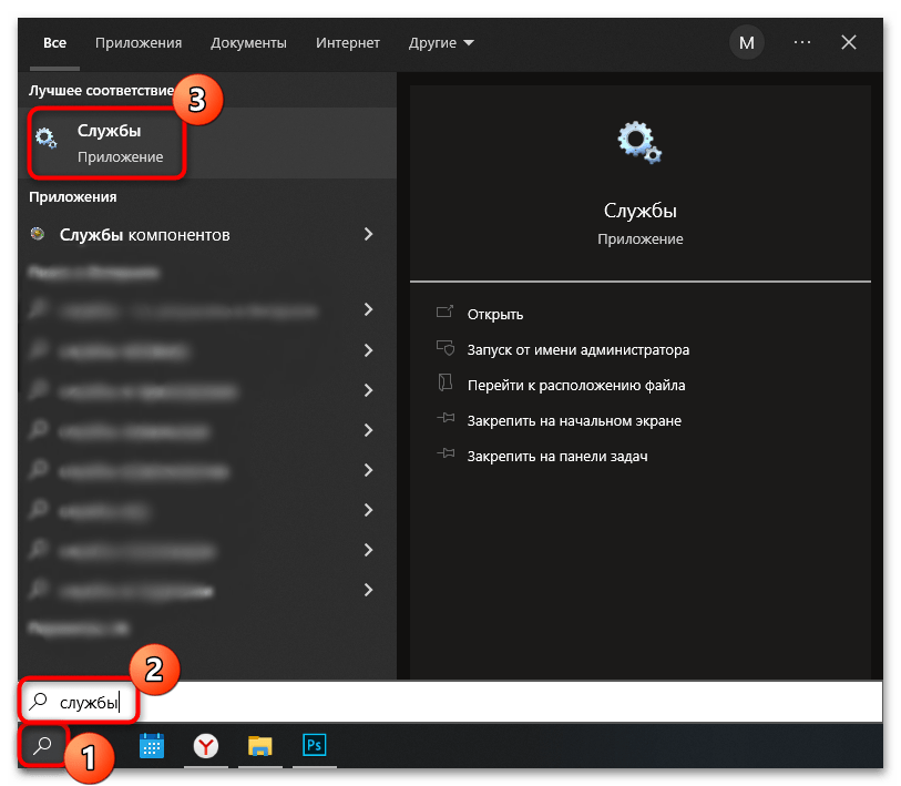- Откройте встроенное средство «Службы» — для этого можно воспользоваться поиском системы.