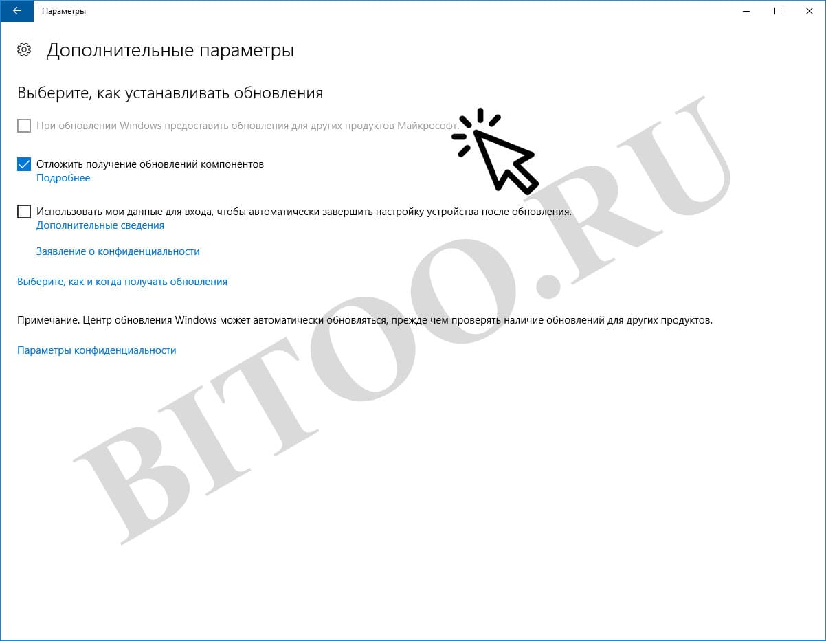 6. И активировать ползунок «Отложить получение обновлений компонентов»