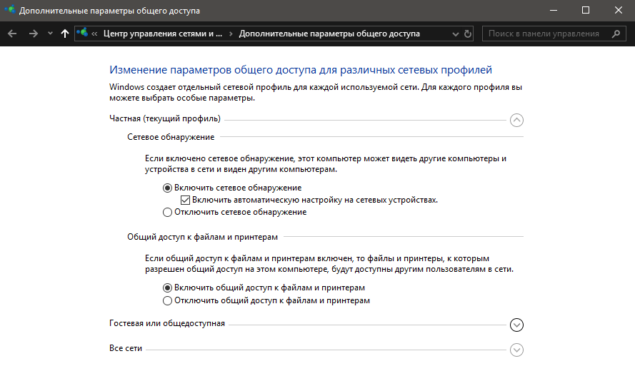 Те же самые настройки нужно сделать на другом компьютере Windows 10, который будет использоваться в качестве клиента и получать доступ к общим ресурсам по сети.
