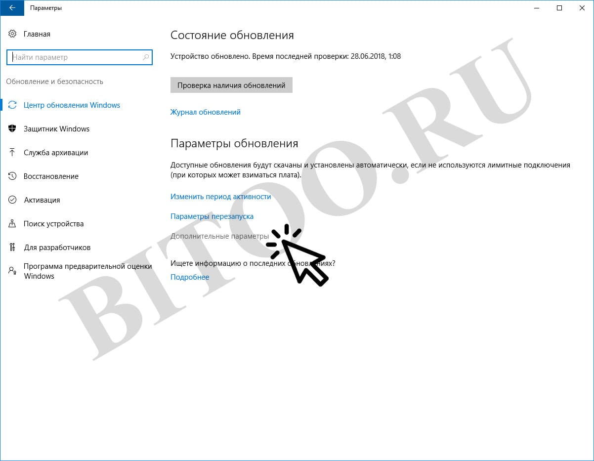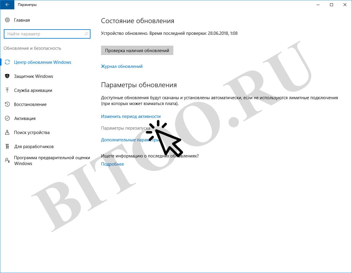 и нажмите на категорию Обновление и безопасность \ Центр обновления Windows.