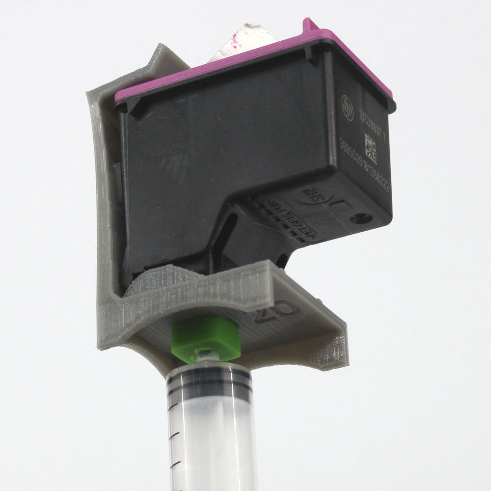 Здесь самое главное, чтобы через заправочное отверстие воздух не выходил наружу. То есть картридж должен быть абсолютно герметичным. Ещё удобнее использовать специальные платформы для прокачки струйных картриджей.