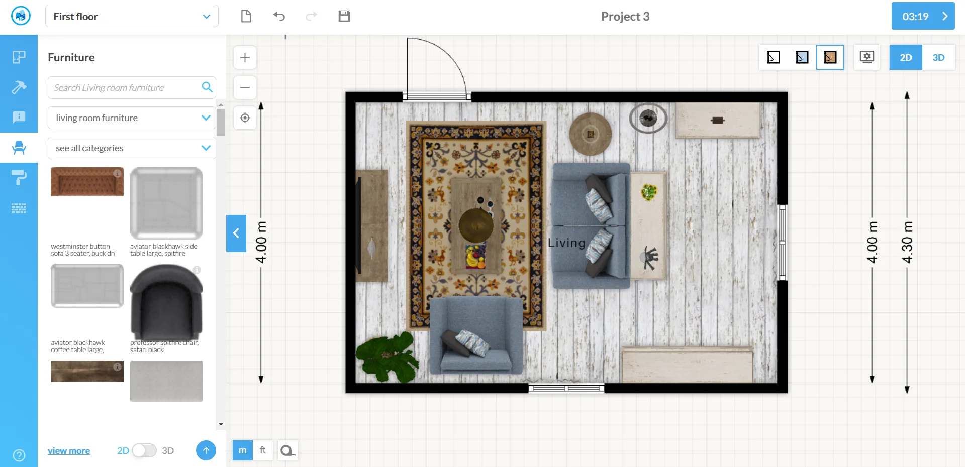 Веб-планировщик, разработанный московской дизайн-студией. Часть функций сервиса можно использовать бесплатно без регистрации на сайте. Вы сможете начертить техплан и перегородки, добавить мебель и сантехнику, расположить освещение и выбрать отделочные материалы для стен, пола и потолка.