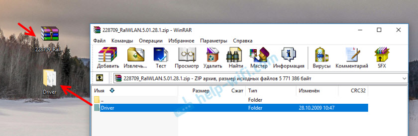 После этого нужно извлечь папку с драйвером из архива и установить его.