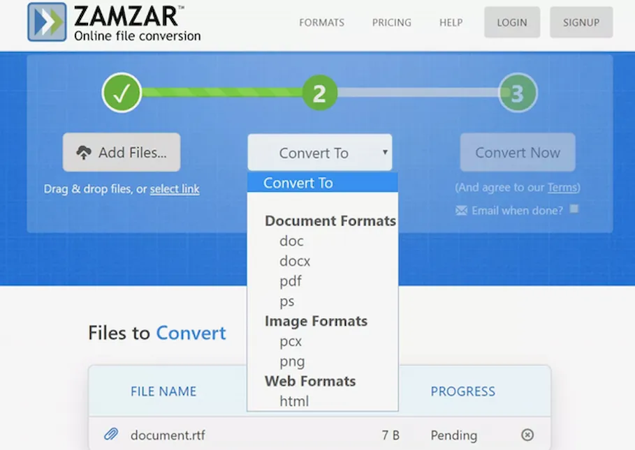 Самый быстрый способ конвертировать файлы RTF – использовать онлайн-конвертер RTF, например, FileZigZag. Вы можете сохранить RTF как файл DOC, PDF, TXT, ODT или HTML. Другой способ конвертировать RTF в PDF онлайн или в PNG, PCX или PS – это использовать Zamzar.