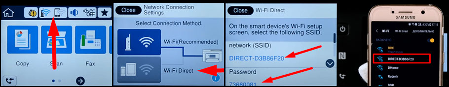 - дождитесь, пока индикатор сети Wi-Fi переключится на Wi-Fi Direct.