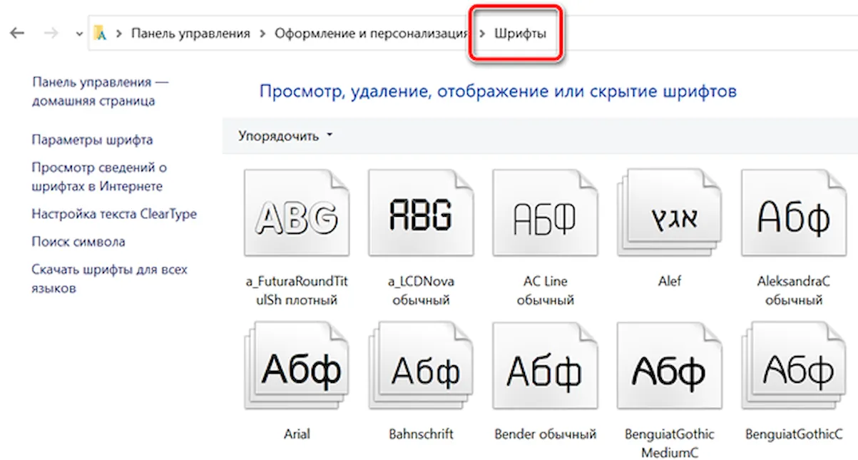 Для этого откройте панель управления, нажмите «Оформление и персонализация», а затем «Шрифты». Скопируйте точно название шрифта, который вы хотите использовать. Мы не рекомендуем использовать Wingdings 1, 2 или 3. Вы также можете найти шрифты, представленные в Windows 10, если щелкнуть правой кнопкой мыши на рабочем столе, выбрать «Персонализация», а затем «Шрифты» в меню слева.