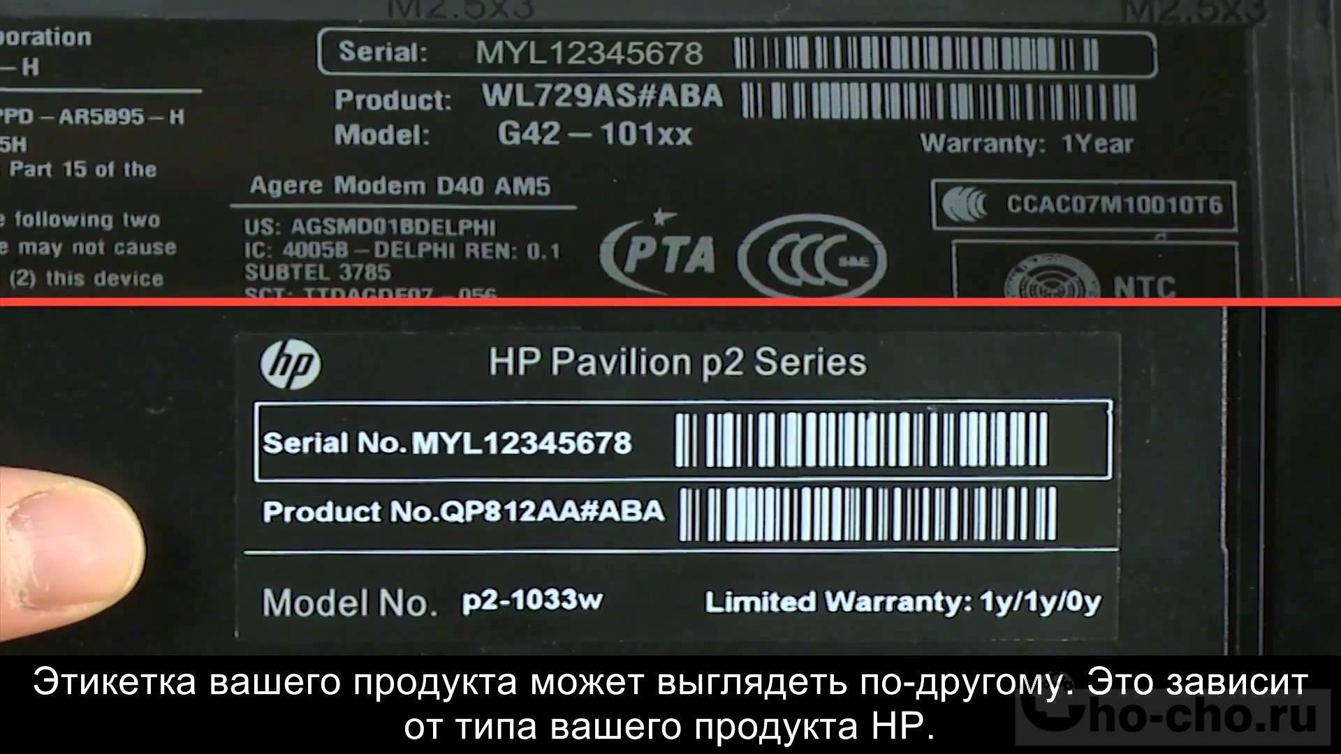 - Поищите на ноутбуке наклейку с информацией об устройстве. В большинстве случаев данная наклейка приклеена к нижней стороне ноутбука HP. Если на нижней стороне ноутбука вы не наблюдаете наклейки, откройте аккумуляторный отсек ноутбука или снимите его заднюю крышку.