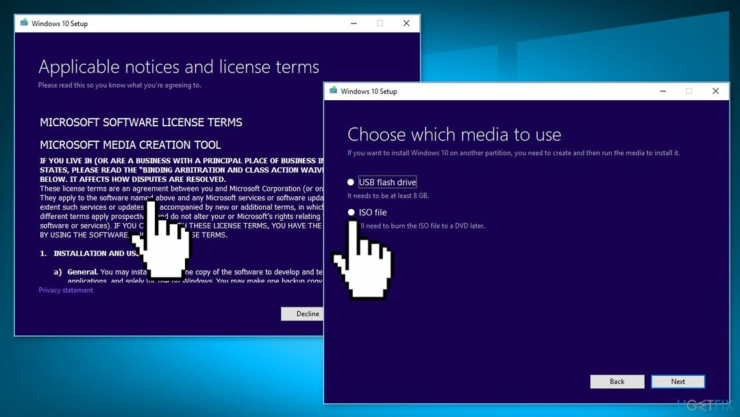 - Выбирать Создайте установочный носитель для другого ПК и нажмите Следующий