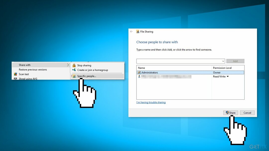 - Выбирать Поделиться с > Конкретными людьми из меню
