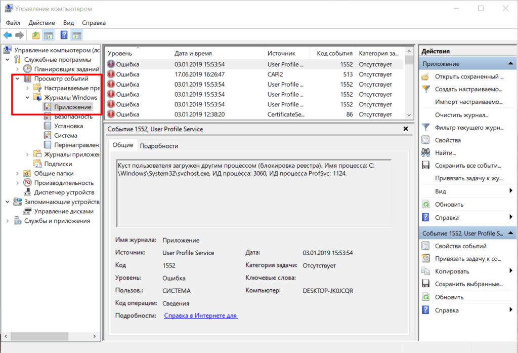 - Раскрываем меню «Журналы Windows».