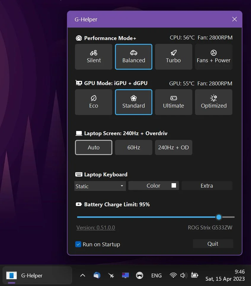 GHelper is lightweight in terms of looks, and resources needed to run. GHelper proves stable, considering it’s basically a beta program built by an enthusiast in his free time, Seerge, proving you don’t need a huge team of programmers to build decent software.