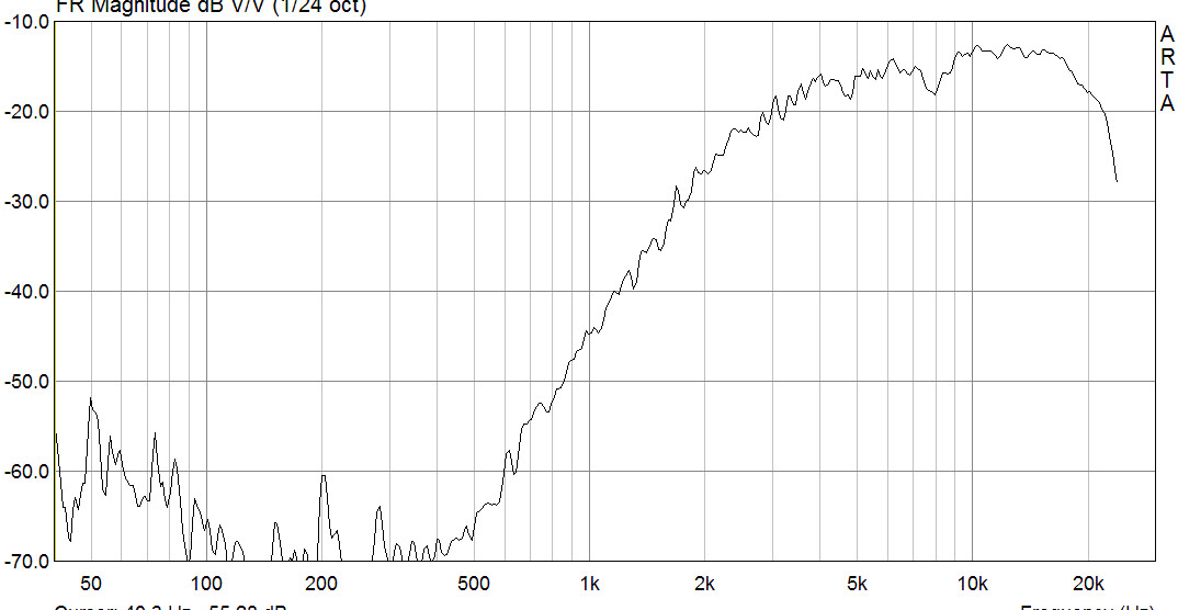 В первом случае, представим, что микрофон установлен на уровне высокочастотного динамика на расстоянии 1 метр. Это, как бы, идеальный вариант измерения АЧХ акустики в целом и конкретно этого динамика.