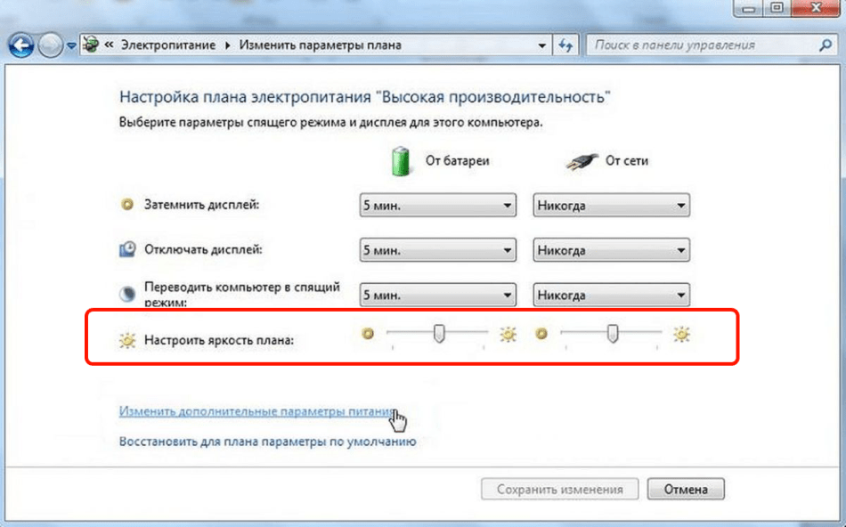 Кроме того, в текущей схеме питания вы можете переместить ползунок яркости в нужную сторону (см скриншот ниже).
