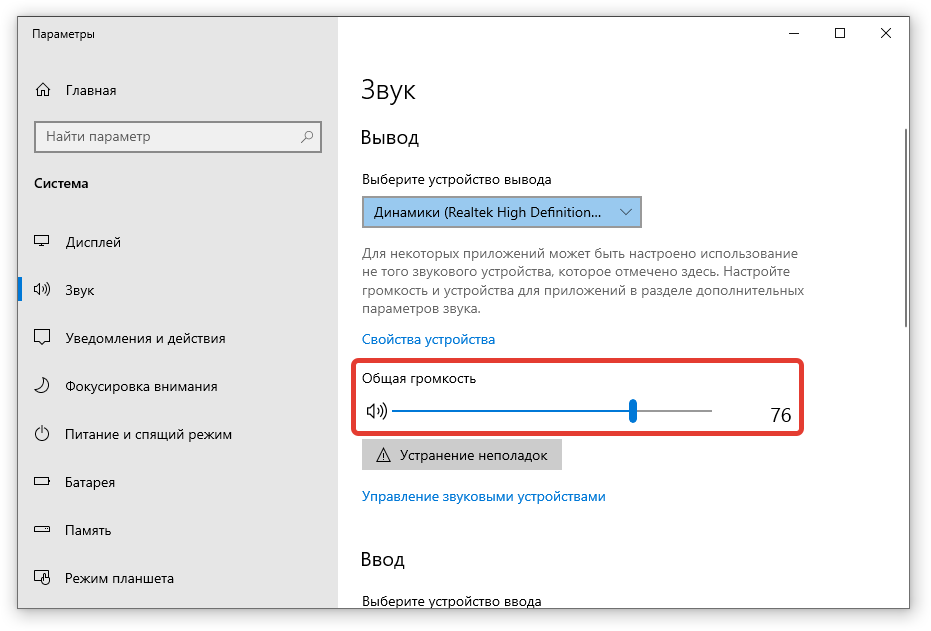 В решении проблемы может помочь выполнение диагностики встроенным приложением Windows 10 для устранения неисправностей в работе звуковых устройств. Если ноутбук по системным причинам не видит аудиоразъем, то программа найдет и исправит неполадку: