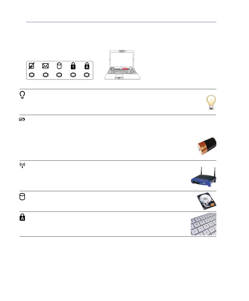 Индикатор в ноутбуке представляет собой световую панель, сообщающую о состоянии либо об изменении параметров определенных частей лэптопа. Это решение явилось результатом постоянного усовершенствования и модернизации ноутбуков в целом. Их количество и качество исполнения повышалось и повышается в прямой пропорциональности со стремительным развитием мира портативной техники, и, благодаря световым индикаторам, мы всегда имеем возможность контролировать работу соответствующих систем.