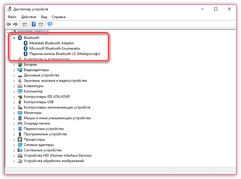 Далее в появившемся списке отыскиваете блютуз. В случае отсутствия его в перечне, он отсутствует и на ПК. В таком случае, можно просто приобрести дополнительно USB-блютуз адаптер и отсутствие блютуз на компьютере будет компенсировано.