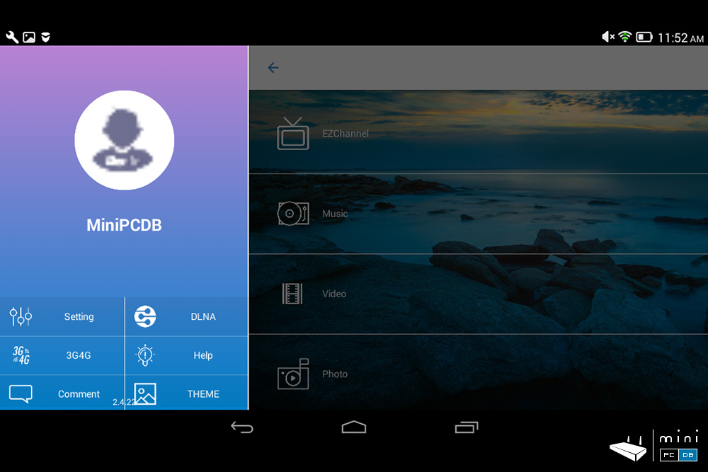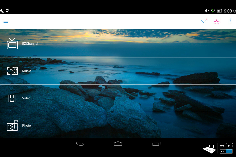- — after that, you will be presented to a full menu: EZChannel, Music, Video, Photo, Camera, Web, Cloud Storage