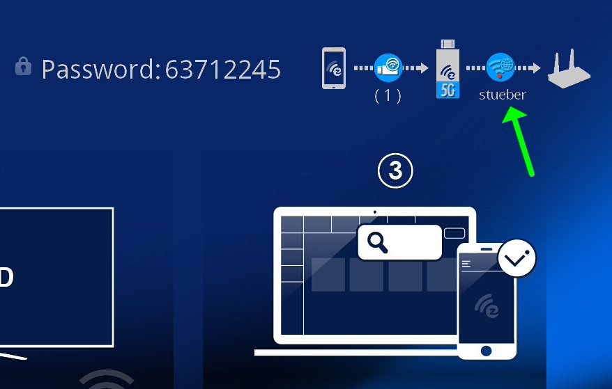 - — change the TV/monitor to the corresponding HDMI port and you’ll see the below image, which shows the SSID and the password