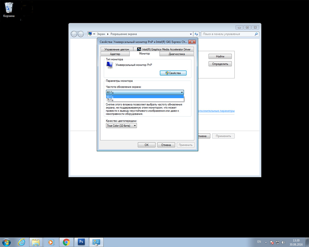 Таким способом вы не только узнаете сколько герц в мониторе, но и сможете изменить их на более приемлемое количество герц.