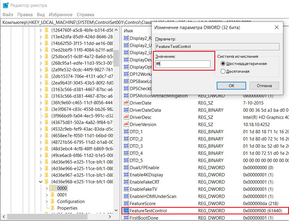 Важно: Необходимо продолжать поиск далее, так как ключей будет несколько и во всех необходимо изменить значение с 1 на 0. В моем случае таких параметров было больше семи, некоторые уже имели значение 0