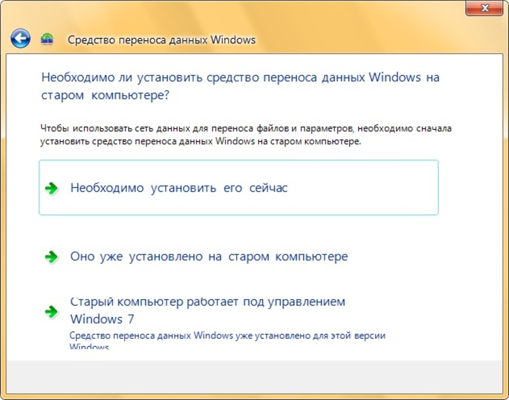 Перенос информации и настроек при помощи средств переноса данных Windows
