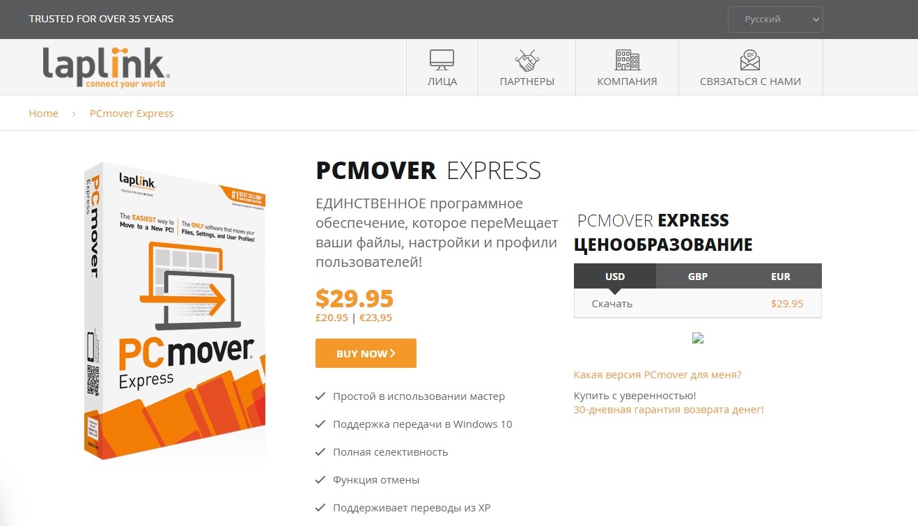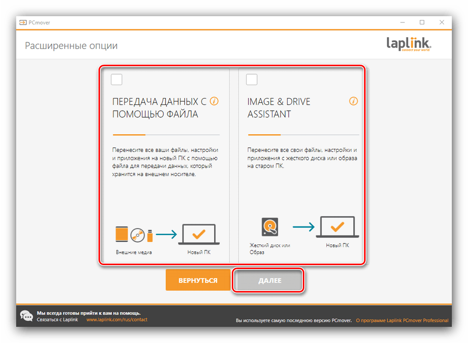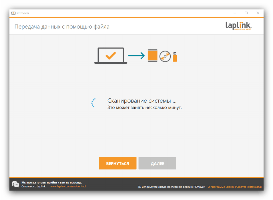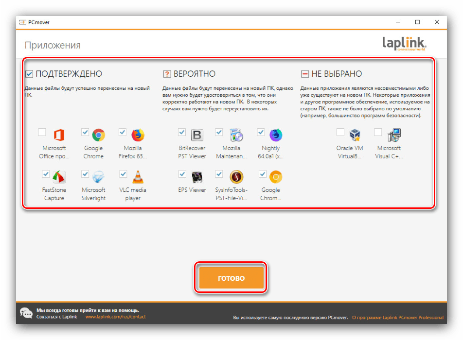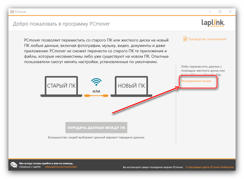 Полное название стороннего приложения — Laplink PCmover Express. Программа распространяется бесплатно, интерфейс не сложный, команды и описание настроек на русском языке. Утилита была официально сертифицирована Microsoft, несмотря на то, что была разработана третьей стороной. Действия: