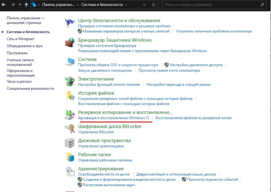 Шаг 1. Нажимаем правой кнопкой мыши по кнопке «Пуск», выбираем пункт «Панель управления». Также открыть панель управления можно при помощи строки поиска. В открывшемся окне выбираем пункт «Архивация и восстановление».