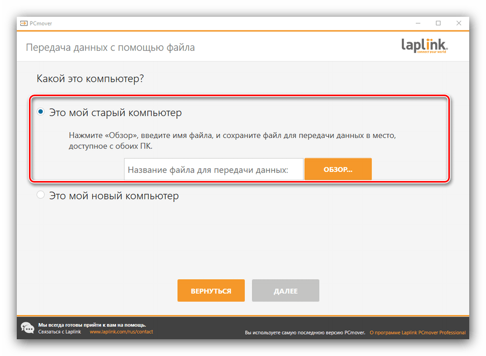 Стороннее приложение, работающее в локальных сетях и Wi-Fi. После запуска программа предлагает указать на каждом устройстве, старый это или новый компьютер (но второй появляется после активации и подключения). Утилита позволяет вручную настроить переносной журнал данных. После изменения нужно нажать «Далее» и дождаться завершения процесса.