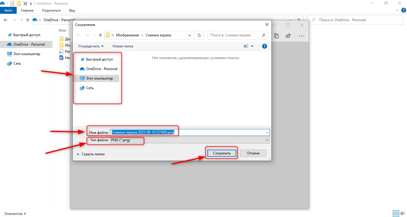 - Укажите путь и имя файла, под которым вы хотите сохранить скриншот, и выберите нужное расширение файла.