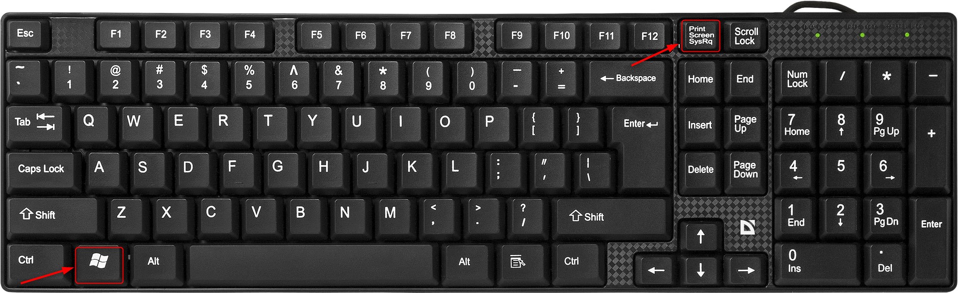 На любой клавиатуре предусмотрена специальная клавиша для снятия скриншотов — «Print Screen». Иногда она подписана иначе — например, «PrntScrn», «PrtScn», «PrtScr» или «PrtSc». Также она может быть совмещена с какой-то другой, например, «Insert».