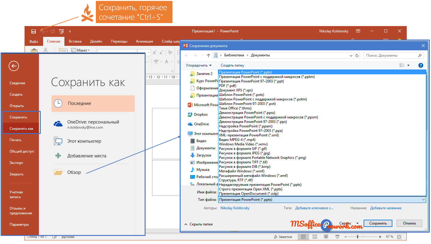 Но, если презентация уже сделана, и вы готовы ее демонстрировать, то в дополнение к формату PPTX, вы можете сохранить презентацию в формате PPSX, который также называют «Демонстрация PowerPoint».