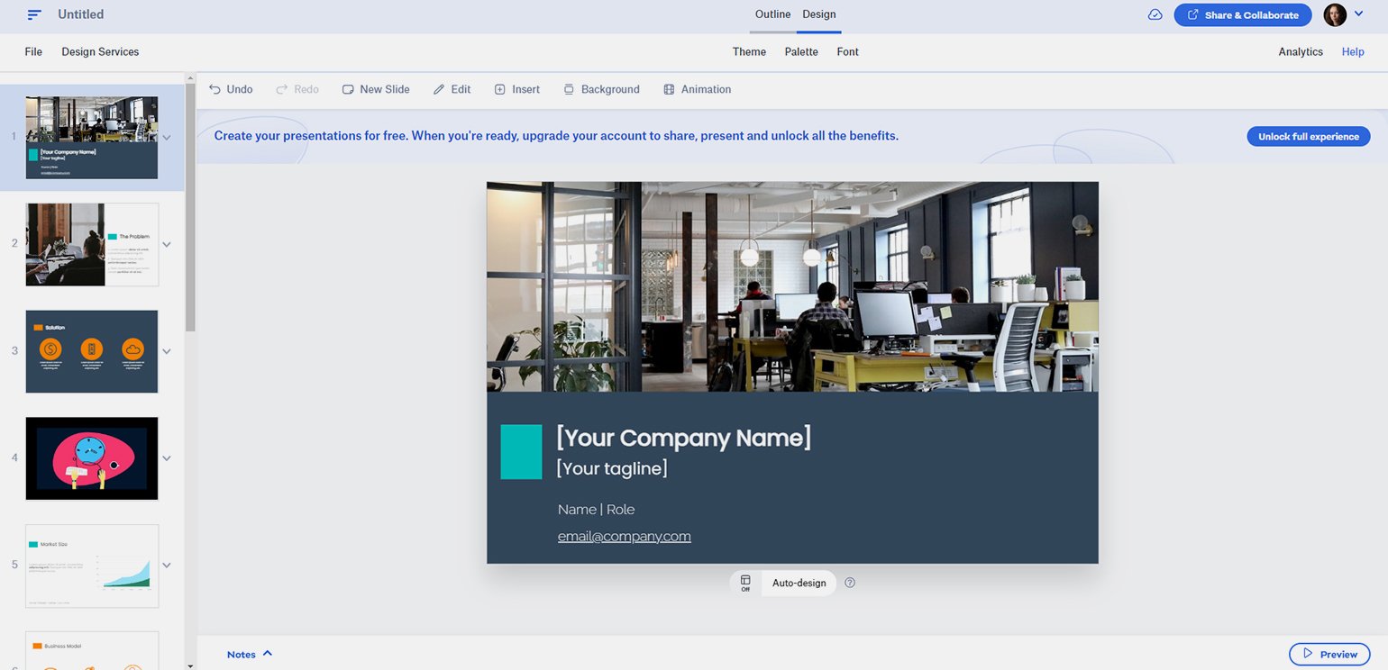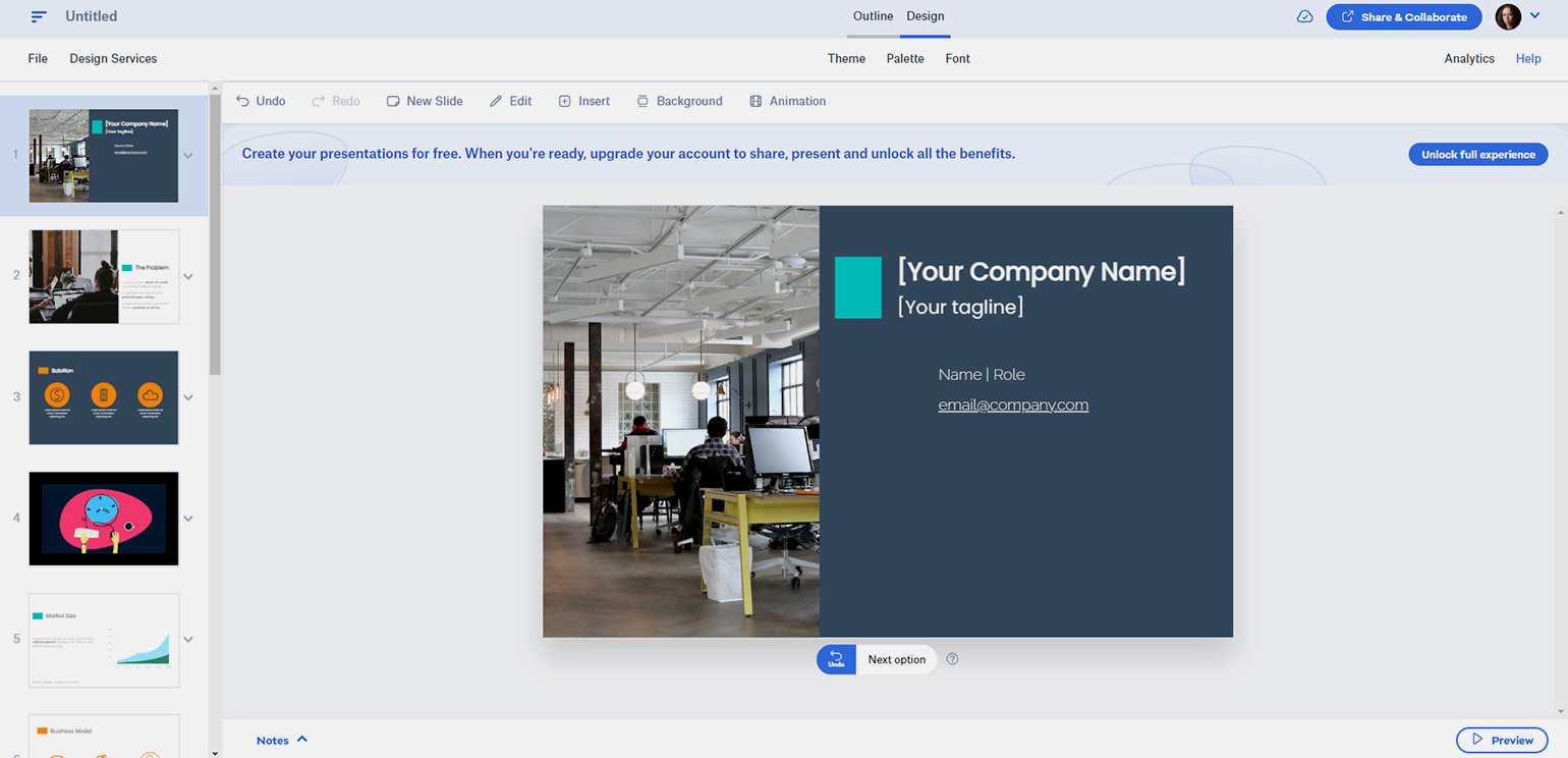 В Slides есть бесплатная версия с самыми базовыми функциями, а уже полноценный продукт обойдется от $6 в месяц. Кстати, все презентации создаются онлайн, в Вашем веб-браузере, десктопных или мобильных решений для создания презентации в Slides пока нет – только просмотр возможен на других устройствах.