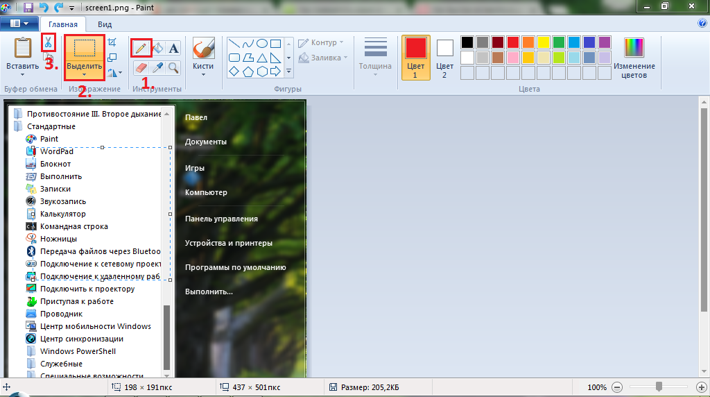 Создание скриншота: кнопка PrintScreen и графический редактор Paint