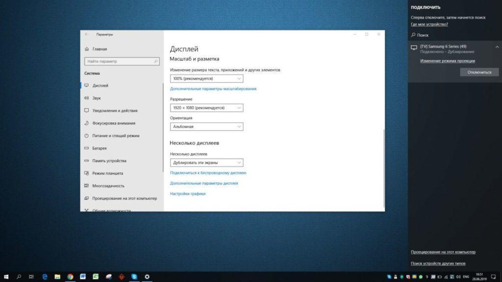 Первичная настройка телевизора завершена, теперь нужно выполнить настройку операционной системы на ноутбуке. Процесс подключения Miracast будет рассмотрен на примере ноутбука с установленной системой Windows 10: