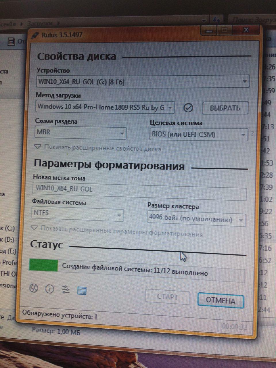 Создание загрузочного USB-накопителя для удаления Линукс с ноутбука