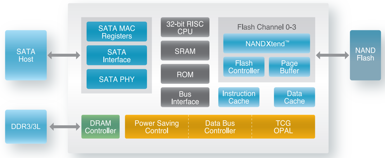 Внутри обоих SSD мы видим контроллеры Silicon Motion серии SM2258 с технологией коррекции ошибок NANDXtend и алгоритмами выравнивания износа ячеек. Их использование призвано увеличить практический срок службы накопителя в несколько раз.