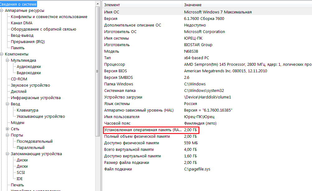 В открывшемся разделе искомый показатель будет отображена в строке «Установленная память (ОЗУ)».