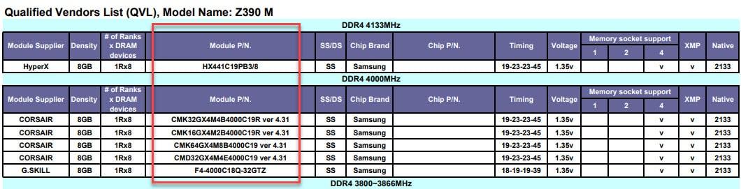 Подбор оперативной памяти осуществляем по Module P/N. Лучше всего брать так называемые KIT. Максимально совместимые планки памяти по 2 или 4 модуля в наборе. Таблица постоянно обновляется.