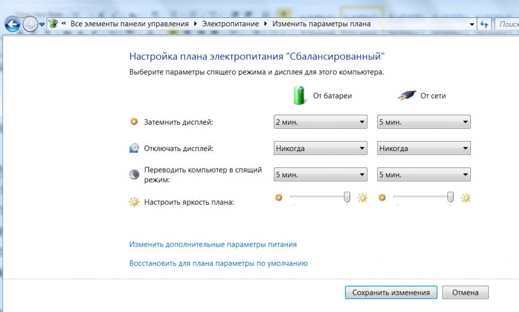 - зайти в панель управления, где найти «электропитание», установить настройки перехода в спящий режим.