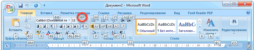 Например, нужно поменять размер букв. Значит, сначала нажимаем Alt, чтобы активировать режим выбора с клавиатуры. Затем, клавишу с буквой Я, чтобы работать с вкладкой «Главная».