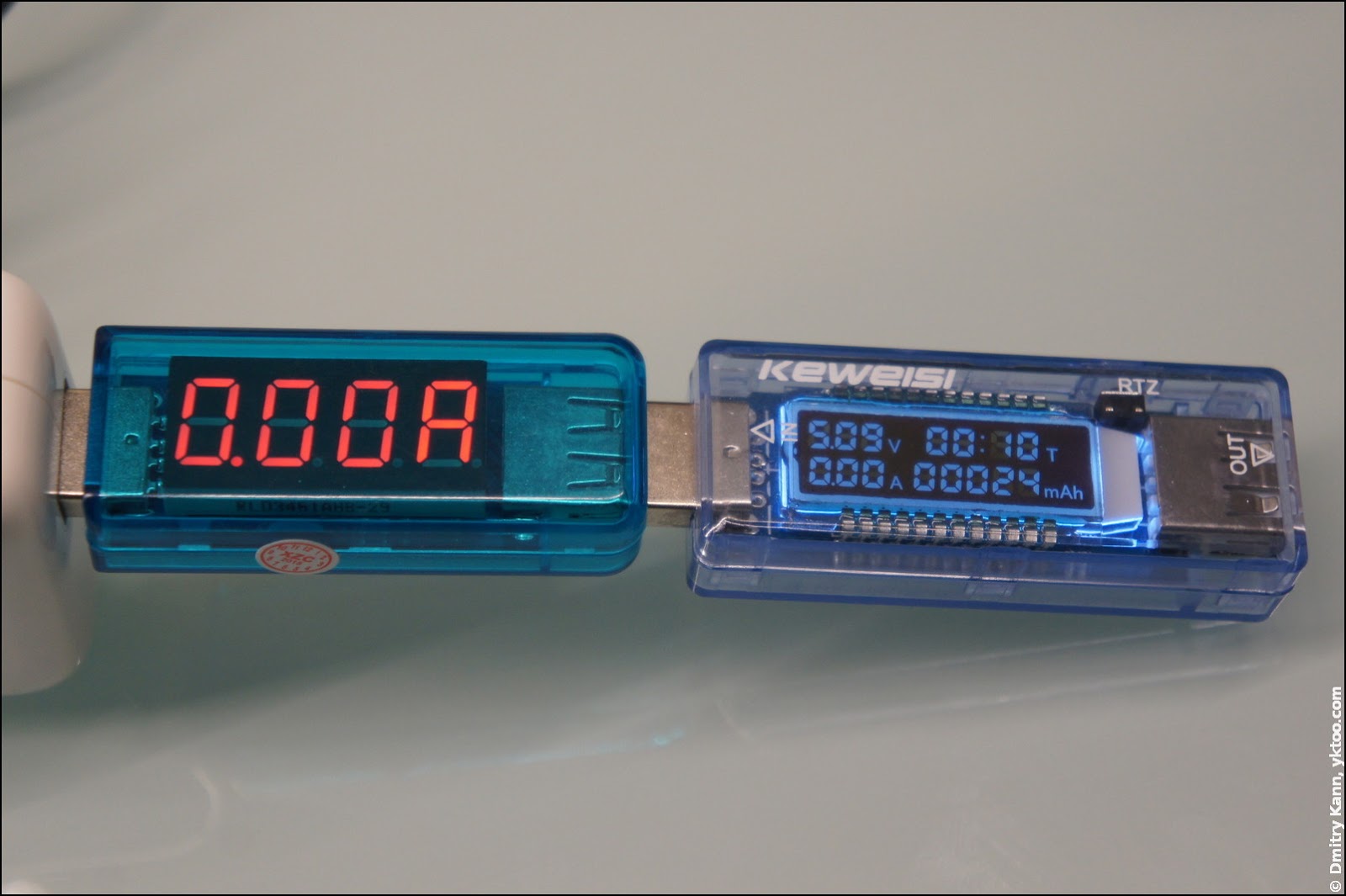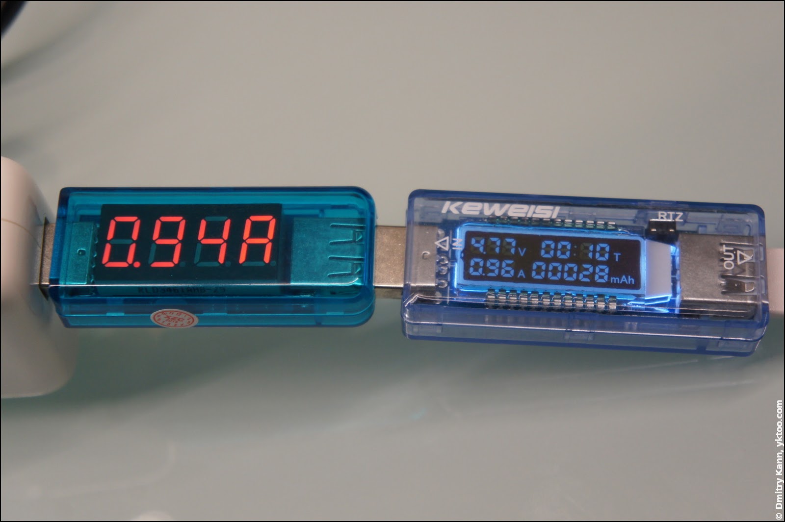 Измерение тока обоими тестерами, адаптер Apple iPod.