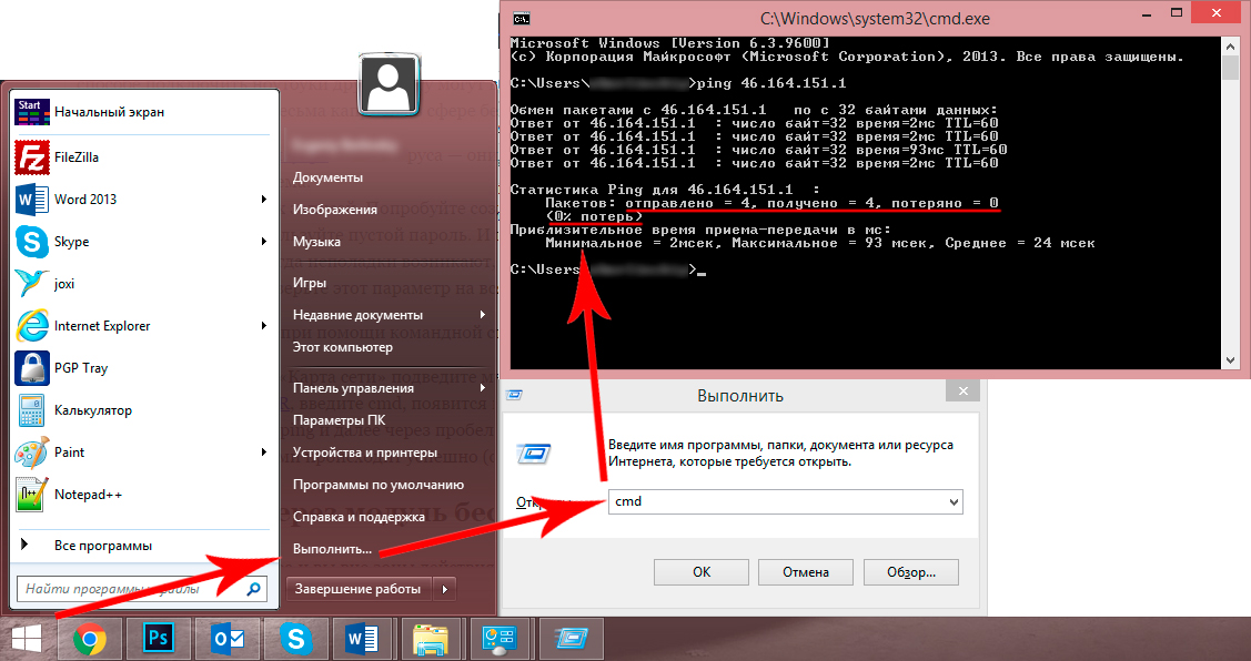 - Наберите команду ping и далее через пробел IP-адрес ноутбука.