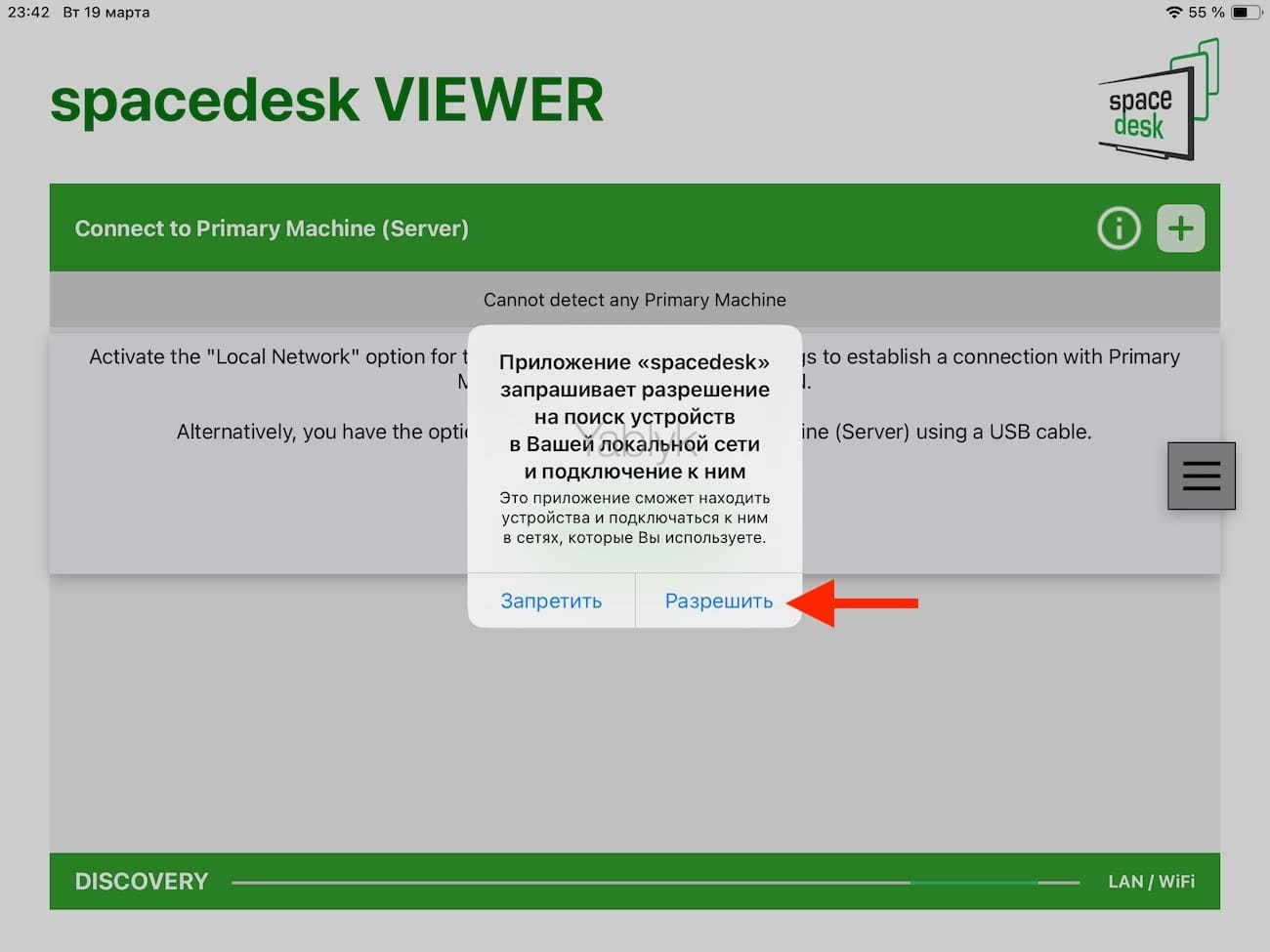 7. Запустите приложение «Spacedesk» на мобильном устройстве и предоставьте необходимый доступ.