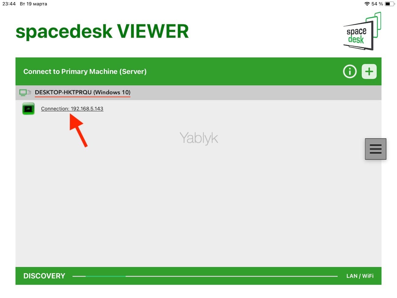 В главном окне приложения появится адрес вашего компьютера с Windows в локальной сети. Выберите его, чтобы подключиться.