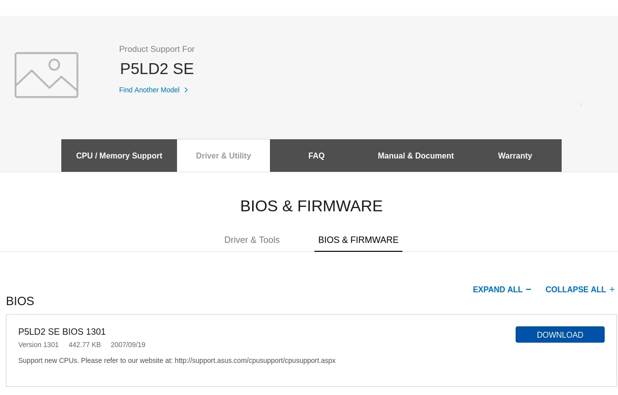 Далее переходим в BIOS & FIRMWARE и скачиваем архив с последней версией BIOS нажав на кнопку DOWNLOAD (СКАЧАТЬ)