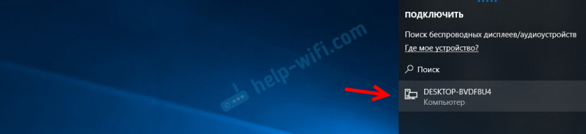 Начнется поиск устройств, где должен быть наш компьютер, на который мы хотим проецировать изображение. Выбираем его.