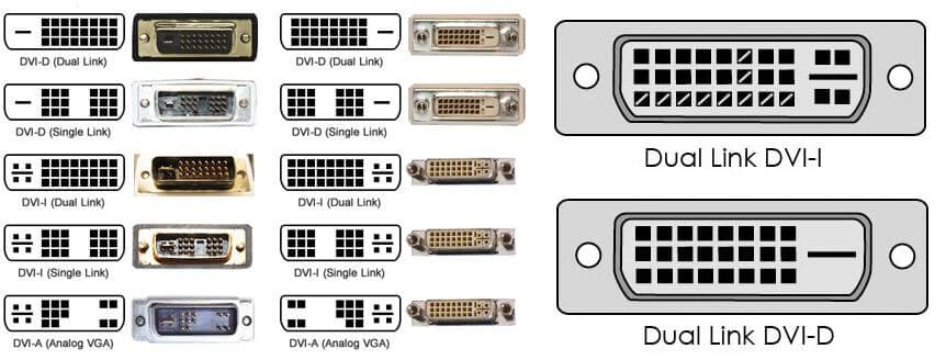 Разновидностей DVI несколько. Но на практике распространён DVI-I (Dual link)