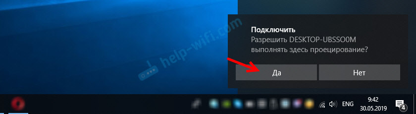 Дальше на компьютере, который будет принимать и выводить картинку на свой экран, нужно подтвердить подключение.